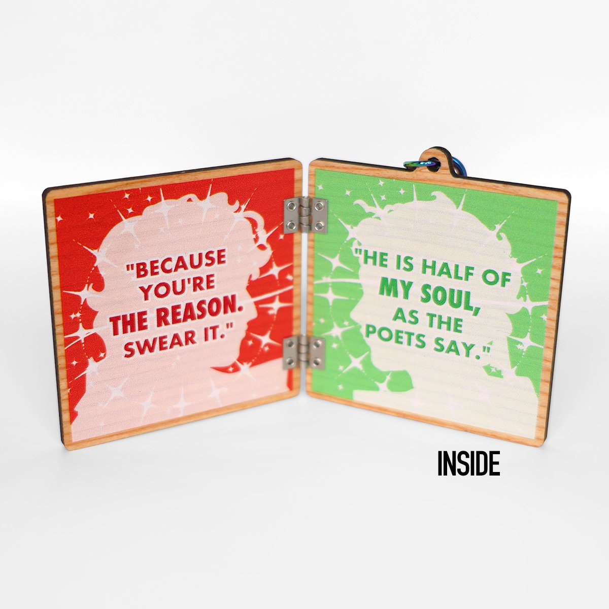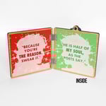 This charm is 2.5 inches x 2.5 inches and opens up like a lil book :) Achilles is on the front with Patroclus on the back. Inside are quotes from the book.